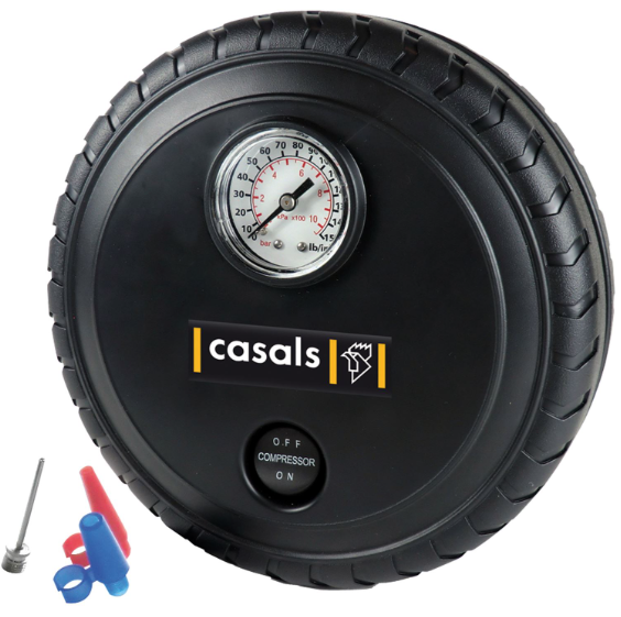 The Casals air inflator boasts an impressive 17 Bars capable of inflating your car tyre within minutes. This unit comes complete with nozzles and a needle to inflate your sports ball.
