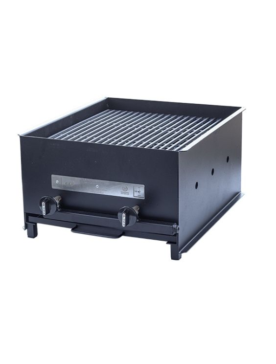 Two-burner gas braai. Material: Mild steel and cast iron. Ideal for medium braaing sessions.