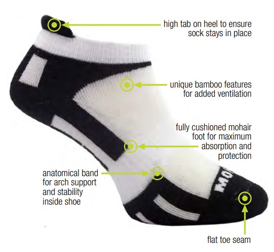 These low cut medisocks – active foot healthy mohair socks are ideal for active lifestyles. With the medical benefits of antibacterial bamboo and super absorbent, breathable, wickable mohair, feet will stay fresh and healthy. Protecting against blisters and chaffing. Cushioned mohair sole provides the support inside trainers. Great for running and cycling, also ideal for walking and golf.