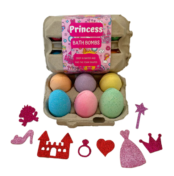 Fun foam princess shapes in 6 egg bath bombs! Stick them on the bathroom tiles and create your own fairytale!