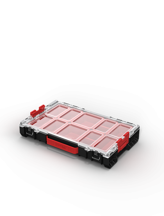 Qbrick System PRO Organizer 100 is the most compact model from the PRO line. The most important advantages of this organizer are the patented Easy Access System, a seal in the cover, a super-durable polycarbonate cover, an ergonomic handle, and polyamide side connectors.
