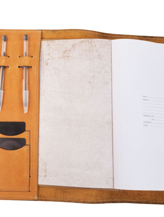 Protect your books in style with this A4 leather cover. Made to last and add sophistication, it’s a versatile choice for any avid reader or professional.
