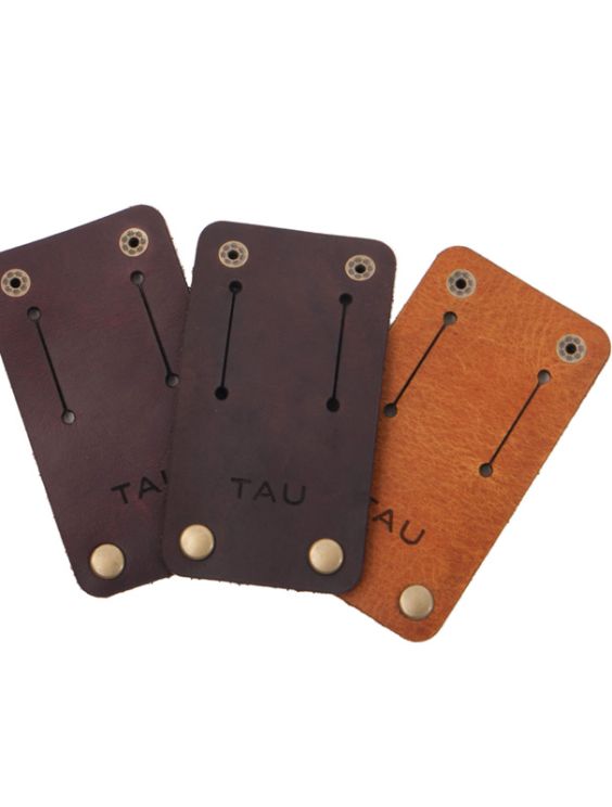 Assortment of high-quality leather cable clips, perfect for organizing cables neatly and avoiding tangling.
