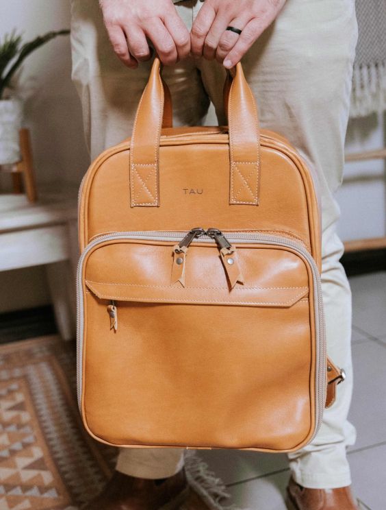 The TAU Nappy Bag is a premium leather backpack for modern parents. Featuring internal bottle holders, organised compartments, and timeless style—function and elegance in one.