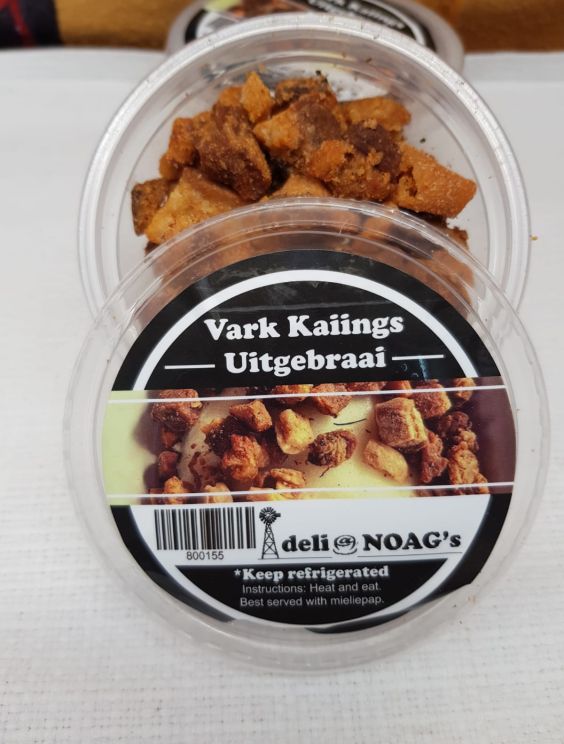 Pork fat fried in our coffee@NOAG kitchen, lightly spiced with bbq spice. Best served warm with mieliepap.