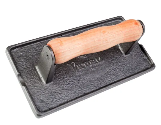 Victoria Enamelled Cast Iron Bacon & Meat Press with Wooden Handle