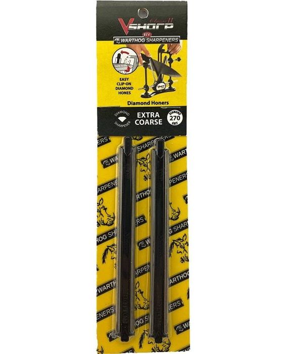 The Warthog V-Sharp Classic II Diamond Stones Knife Sharpener – Extra Coarse, 270Grit sharpens the blade on both sides simultaneously. It is ideal for kitchen knives, fillet, hunting, and most other smooth edge knive. This Knife sharpener is for all hobbyists. A perfect kitchen knife sharpener for home chefs, pros, outdoorsmen, and other hobbyists.