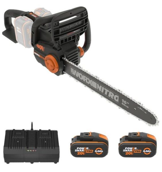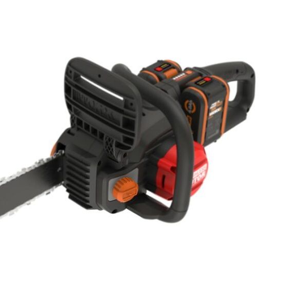 The WORX NITRO 40V Chainsaw Kit WG385E features a chain brake that stops the blade in less than half a second, steel bumper spikes and low kickback, to make sure that you are always in control